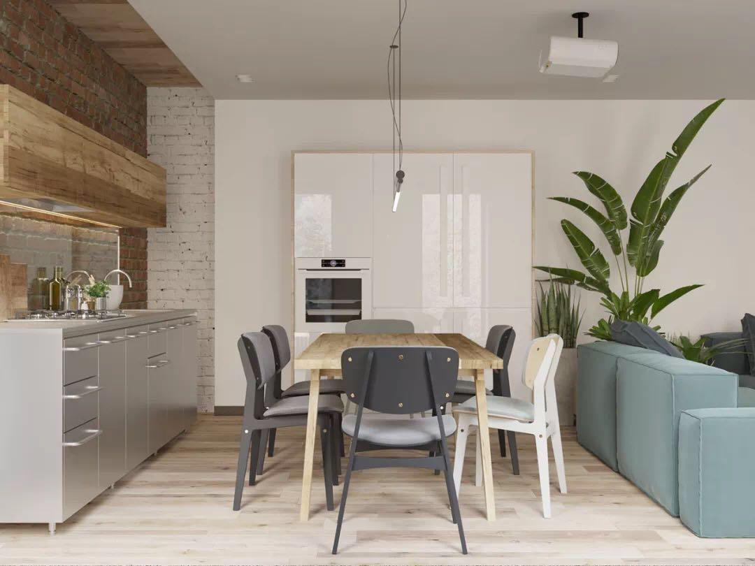 餐厅和厨房为一体,一张桌子,就可以解决小户型日常所需。