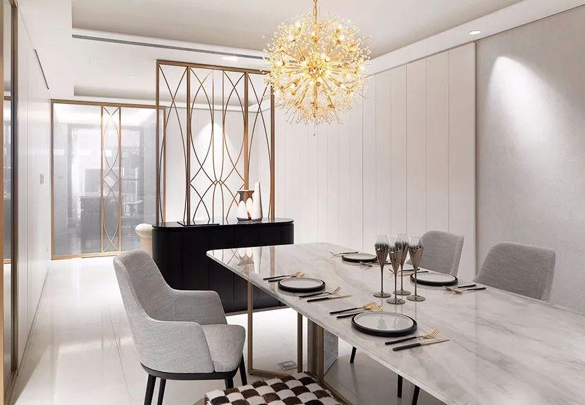 在居家空间上仿以石材、钛金等材料渐进铺排。